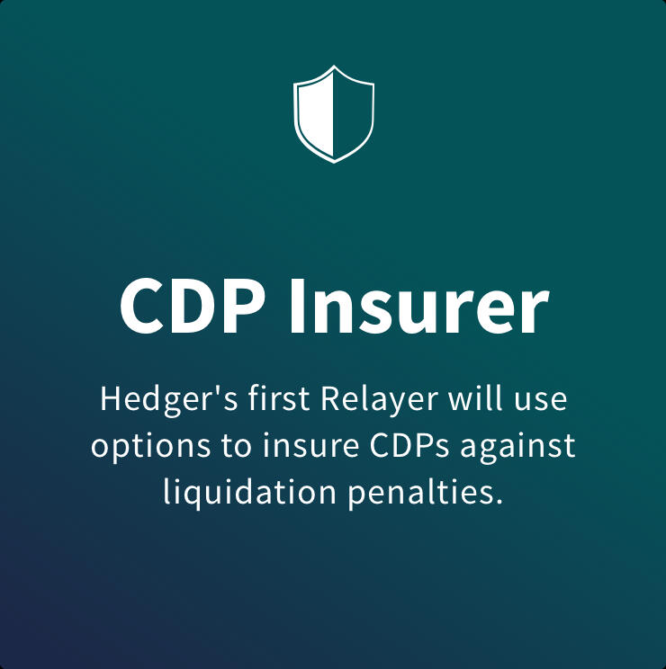 Today option trading and especially writing, is available through centralized exchanges which are susceptible to counter-party risk and limited to experienced, high net worth individuals, institutions and hedge funds.Hedger uses a suite of Ethereum smart contracts to allow anyone to write and settle option contracts with minimal counter-party risk. Writer’s collateral is held in escrow smart contracts and released to option Buyers if exercised or returned if expired. Option Writers and Buyers interact with Hedger smart contracts through Relayers.Recent demand for CDPs resulted in over $500 million worth of Ethereum locked up as collateral for loans/margin trading. Hedger’s first Relayer - CDP Hedger will allow CDP owners to get coverage against liquidation penalties with put options.